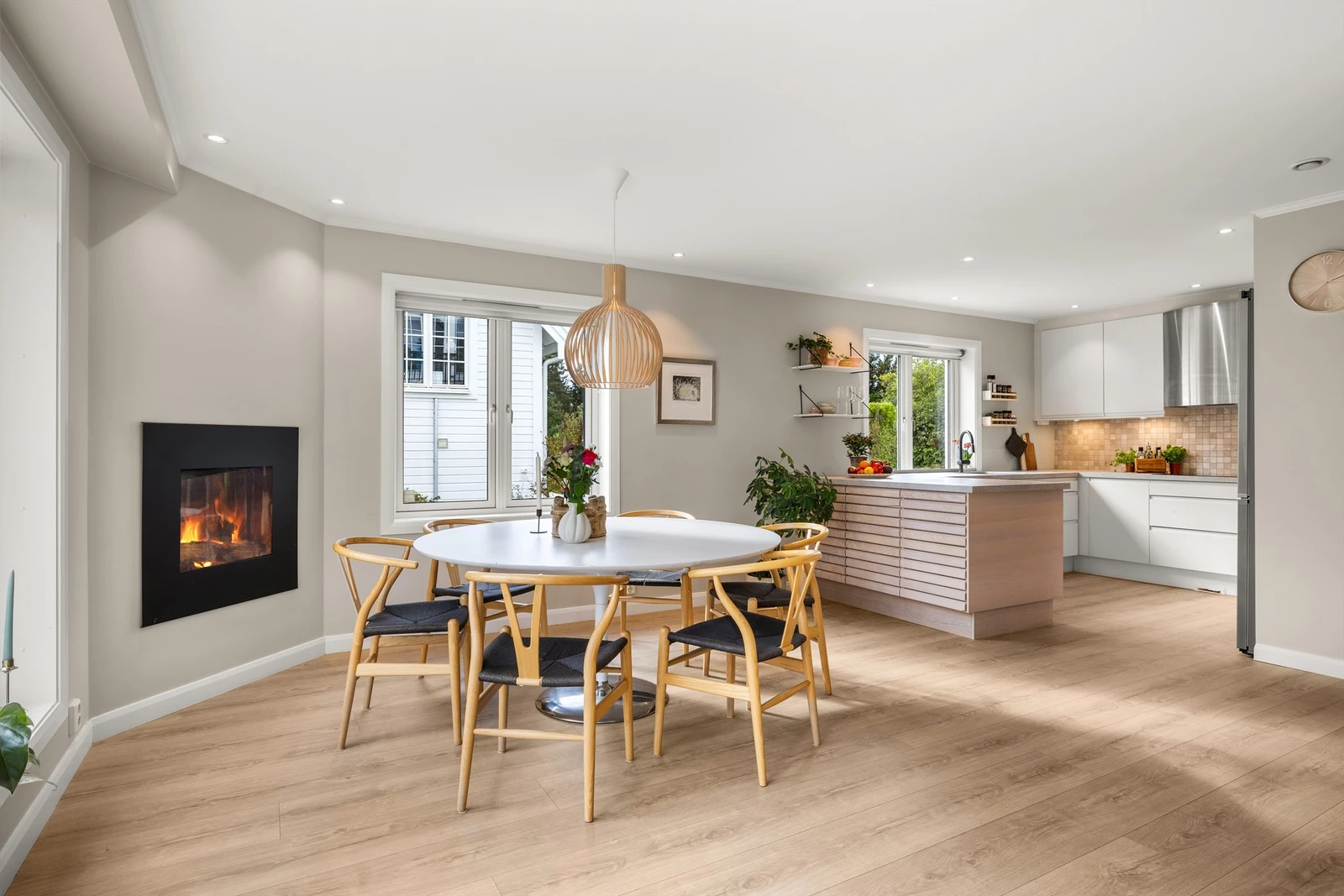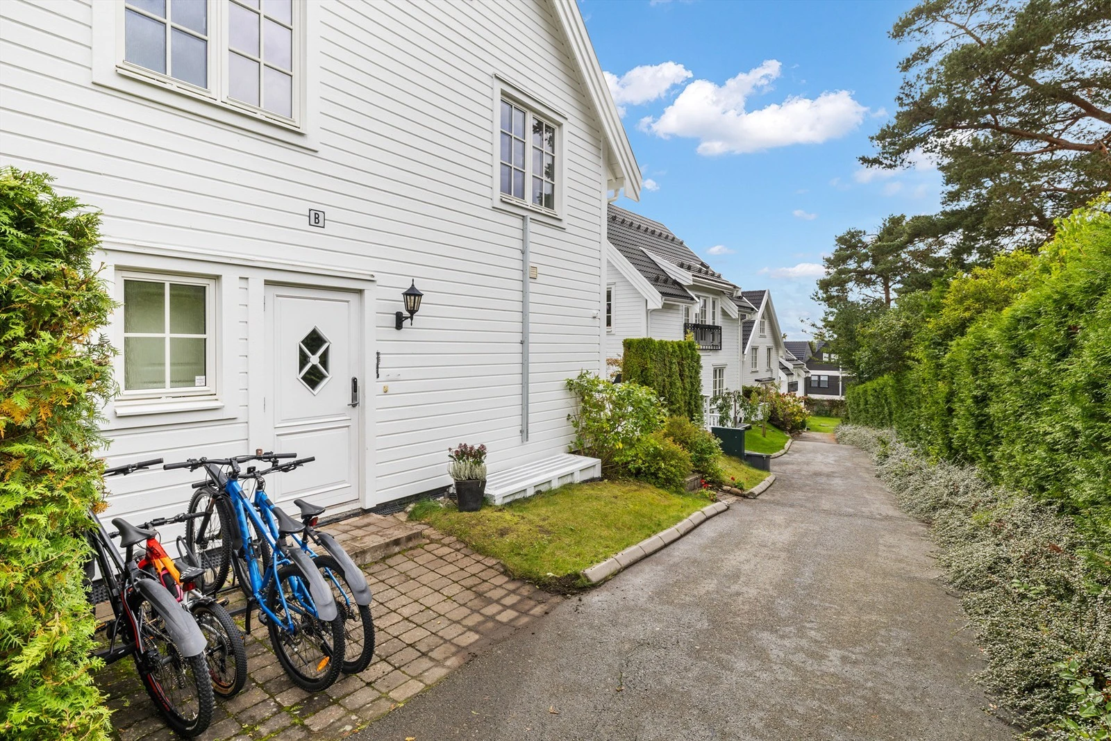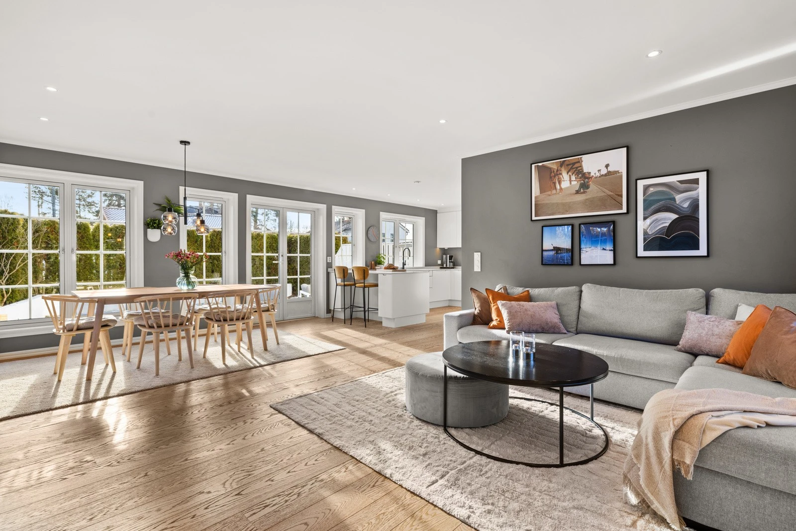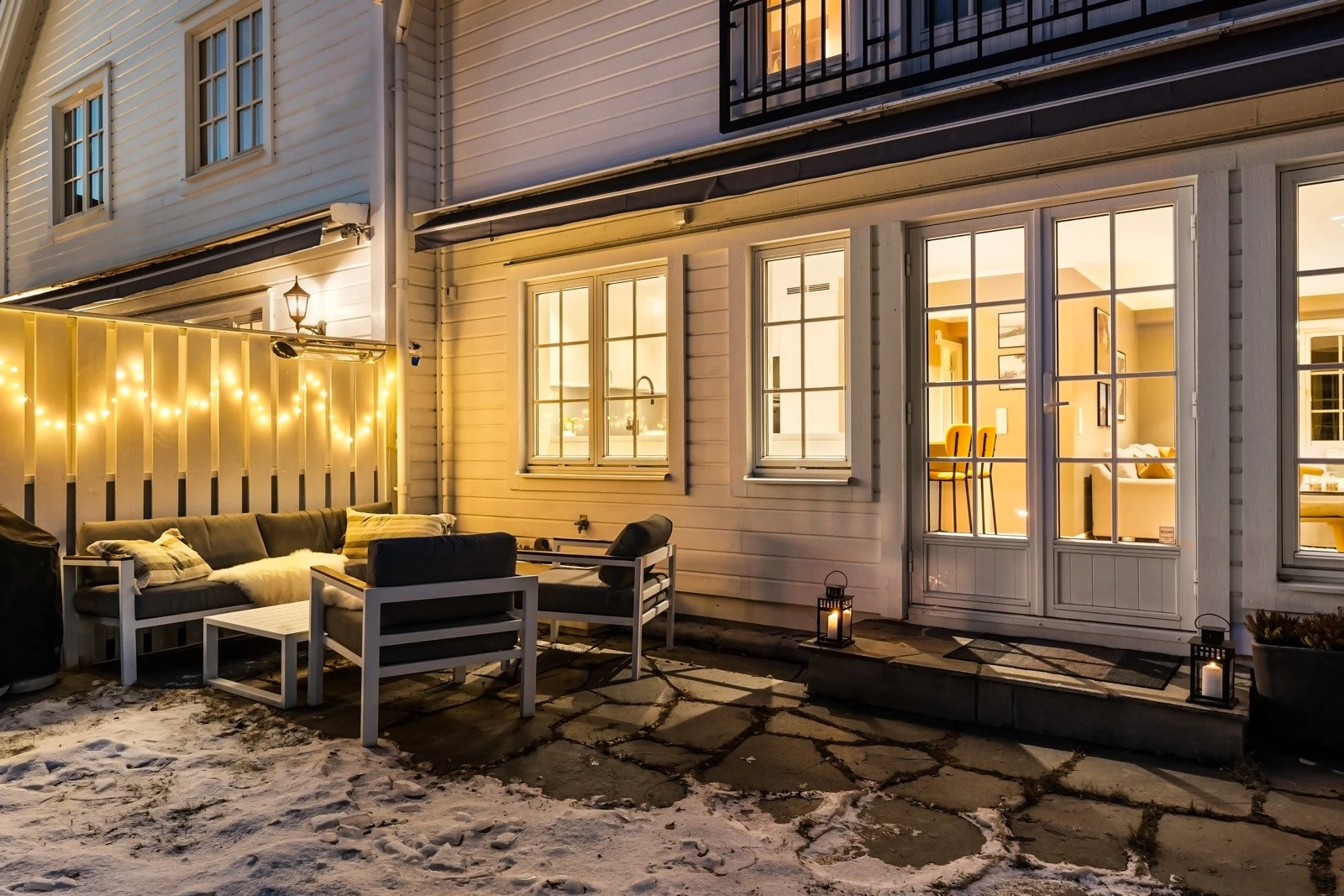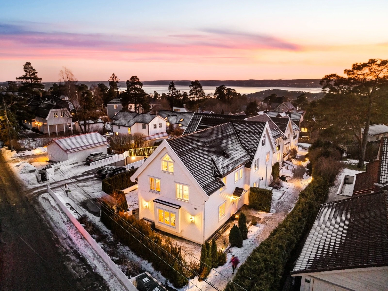 Variasjon i høyder, terrasser og åpninger gir et levende fasadeuttrykk, mens planløsningene utnytter tomtens topografi og gir gode romlige kvaliteter med naturlig lys og flyt mellom inne- og uterom.