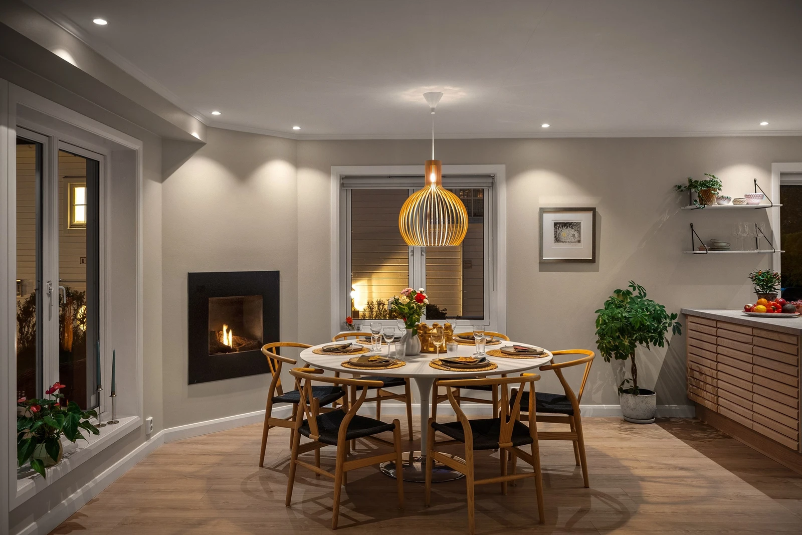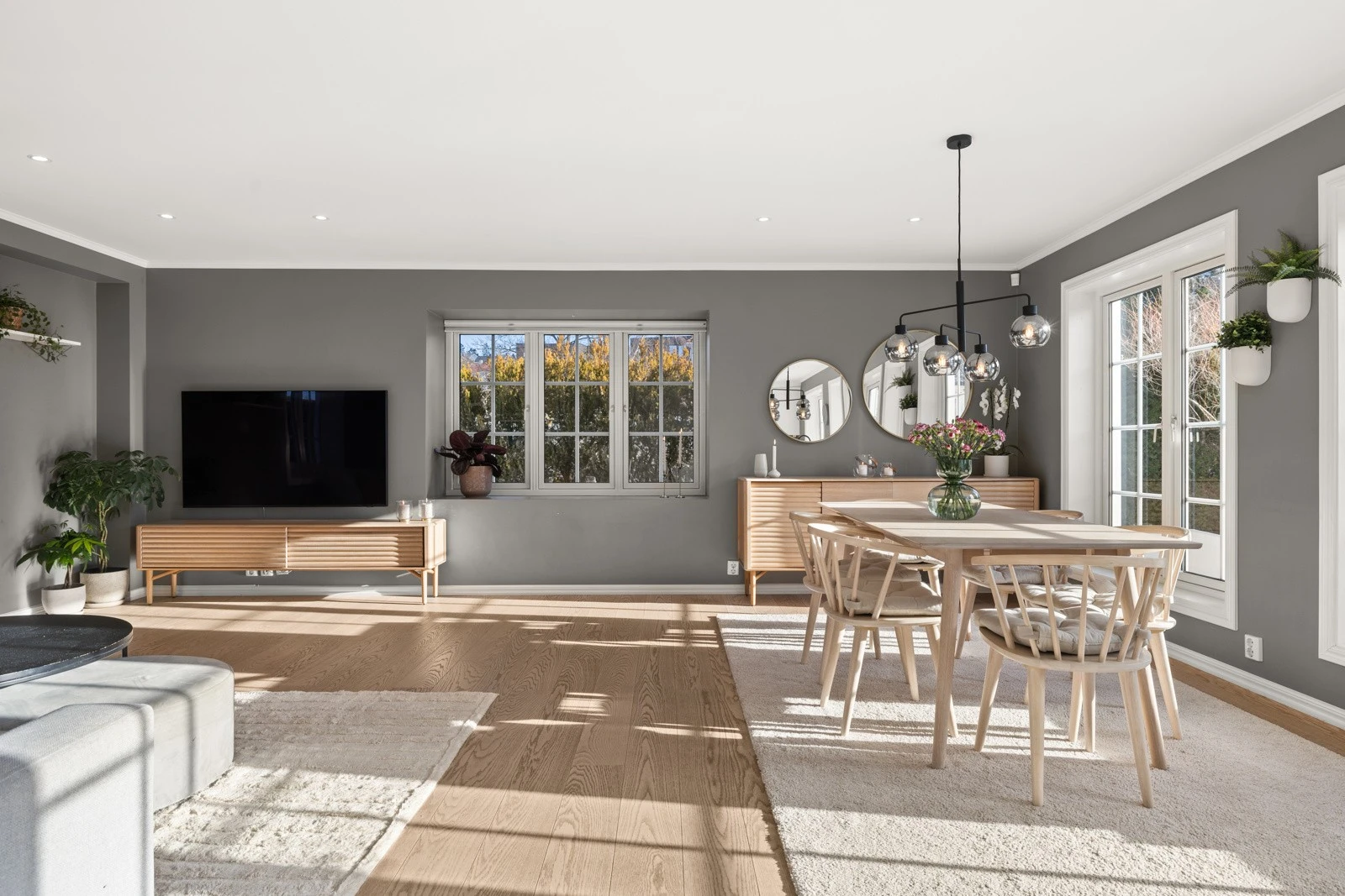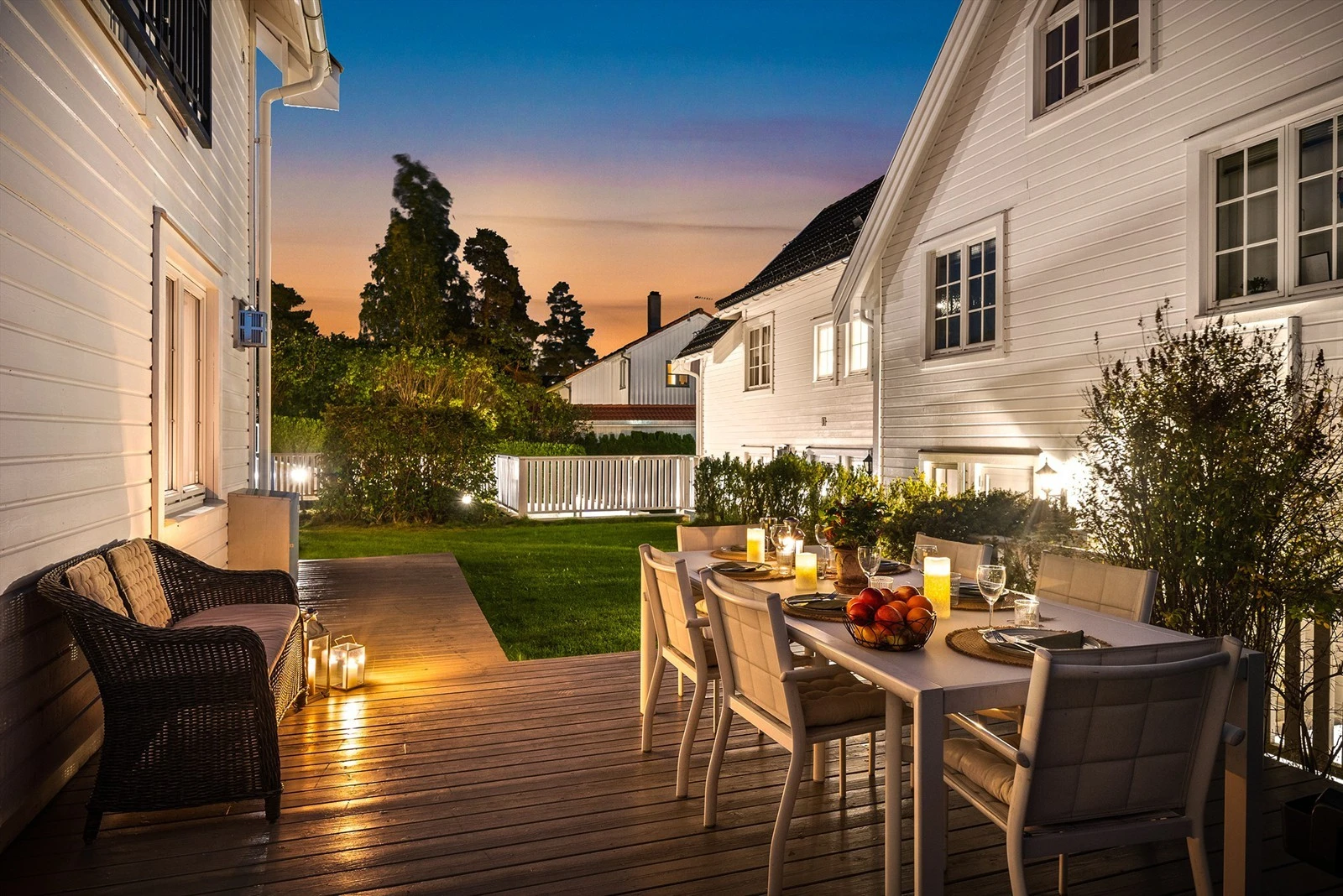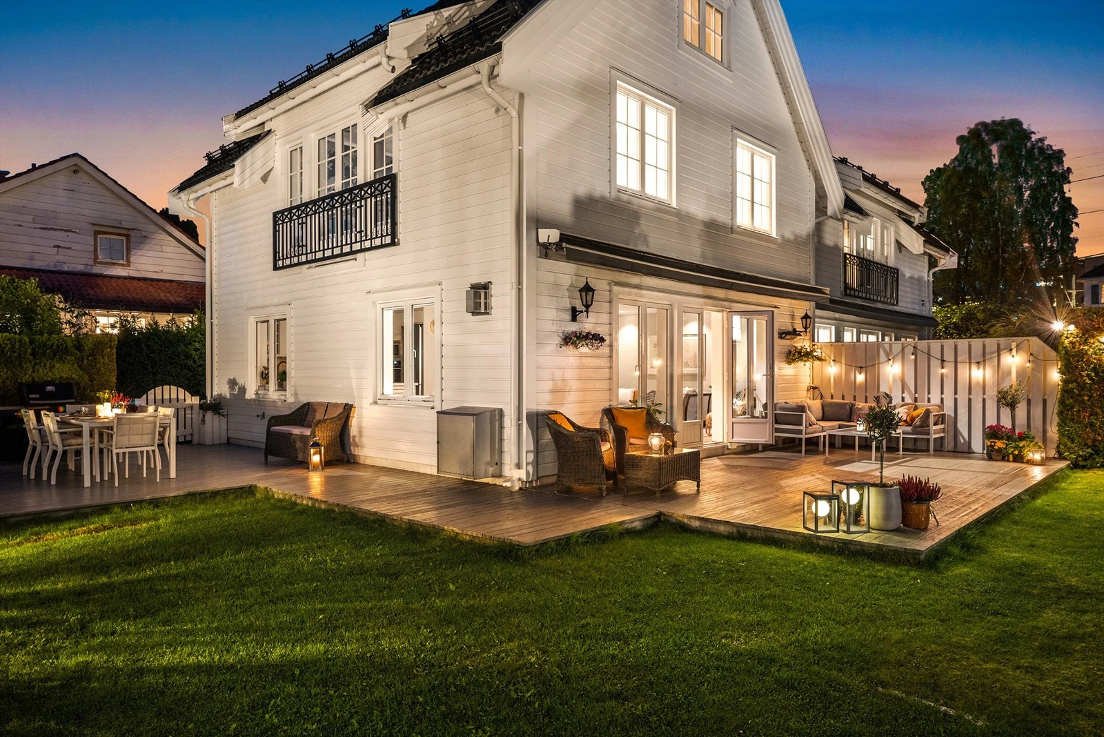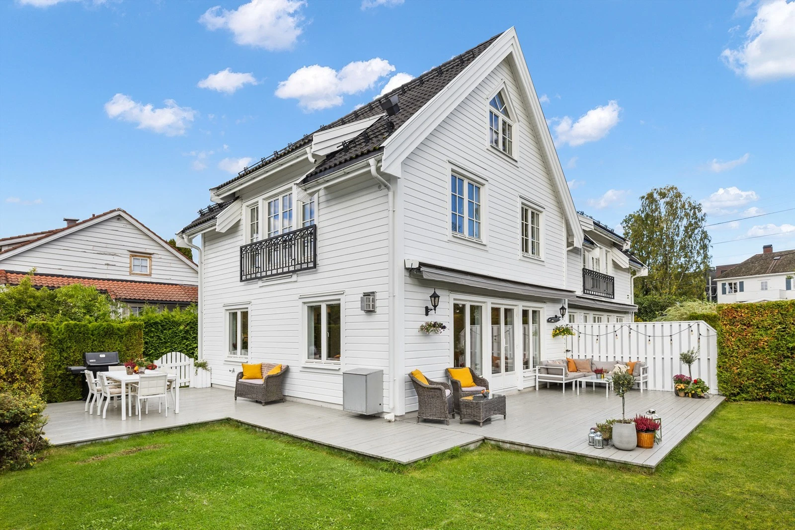 Variasjon i høyder, terrasser og åpninger gir et levende fasadeuttrykk, mens planløsningene utnytter tomtens topografi og gir gode romlige kvaliteter med naturlig lys og flyt mellom inne- og uterom.